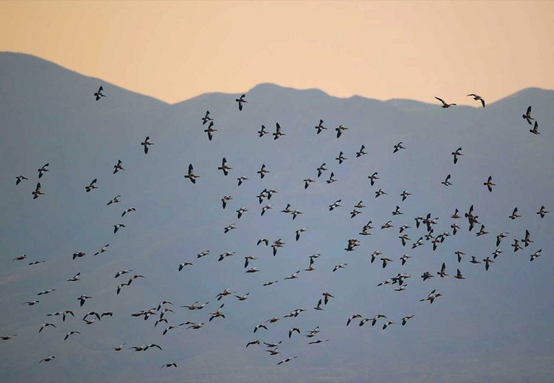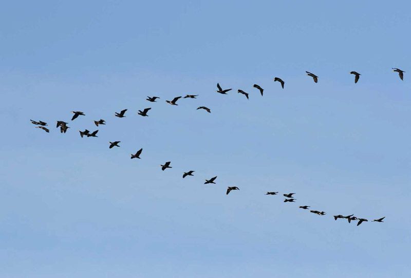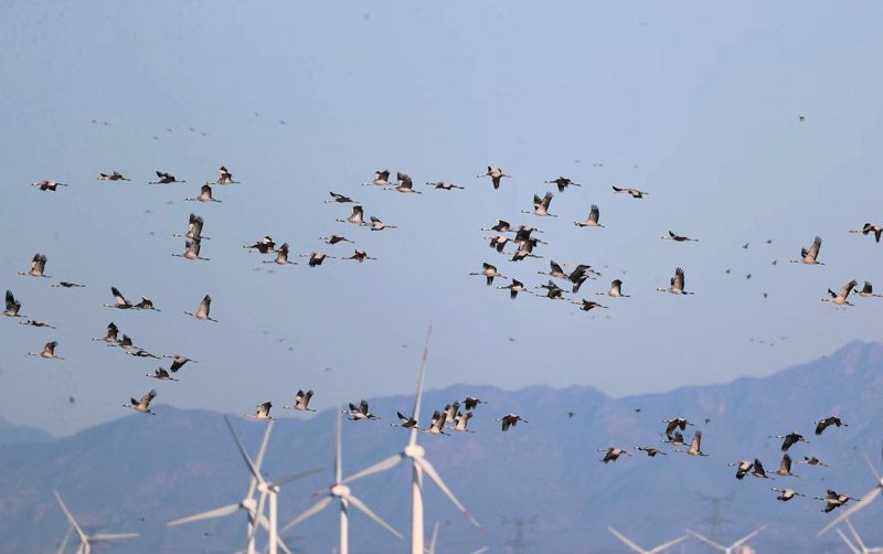 12月4日,北京持續(xù)降溫,官?gòu)d水庫(kù)溫度持續(xù)保持在冰點(diǎn)以下,黑豹野生動(dòng)物保護(hù)站隊(duì)員觀測(cè)到,這兩天南遷候鳥(niǎo)明顯加快了南遷步伐。預(yù)計(jì)本月底候鳥(niǎo)遷徙季將結(jié)束。圖為鴻雁、豆雁、小天鵝飛向南方。