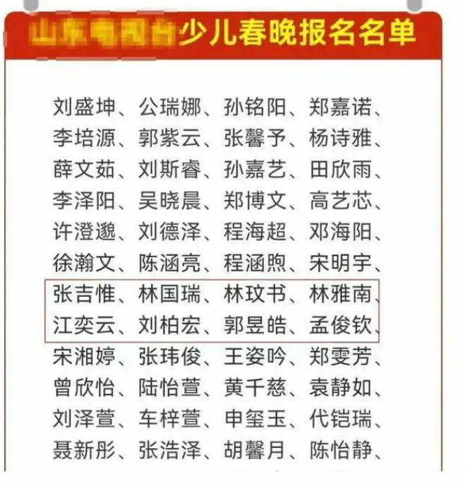 2021年,某藝教機(jī)構(gòu)公布了其聲樂比賽的獲獎(jiǎng)名單,其中,“最忙五人組”斬獲一、二、三等獎(jiǎng)。其他獲獎(jiǎng)?wù)呙麊?,也同樣出自網(wǎng)絡(luò)人名庫。2023年,“最忙五人組”的名字又出現(xiàn)在了山東某少兒培訓(xùn)機(jī)構(gòu)公示的少兒春晚報(bào)名名單中。