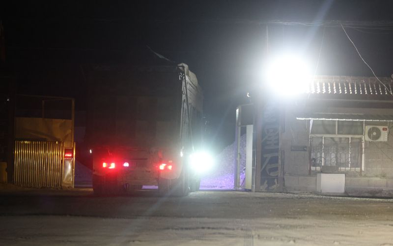 11月27日晚,一輛貨車滿載圣泉生態(tài)公司所開采的礦石,駛進平邑縣金星石材公司。 新京報記者 李英強 攝