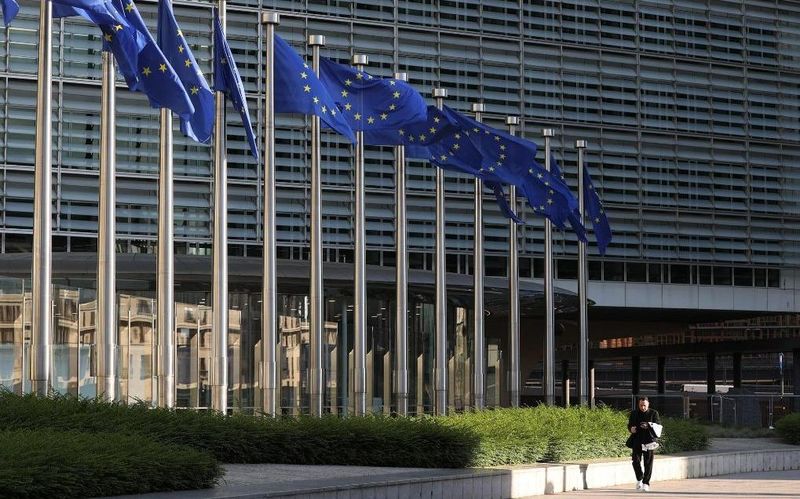 5月23日,在比利時布魯塞爾,一名男子從歐盟總部大樓外經(jīng)過。圖/新華社