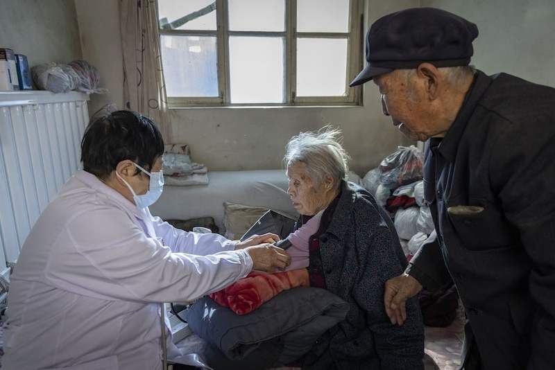 房山平峪村四面環(huán)山,村里大多是留守的老年人和兒童,就醫(yī)不便。69歲的晉懷花是村子里唯一的醫(yī)生。