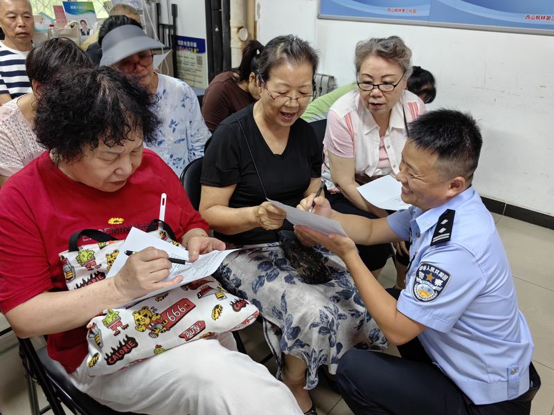 邢運偉進行反詐講座后解答老人們的疑問。受訪者供圖