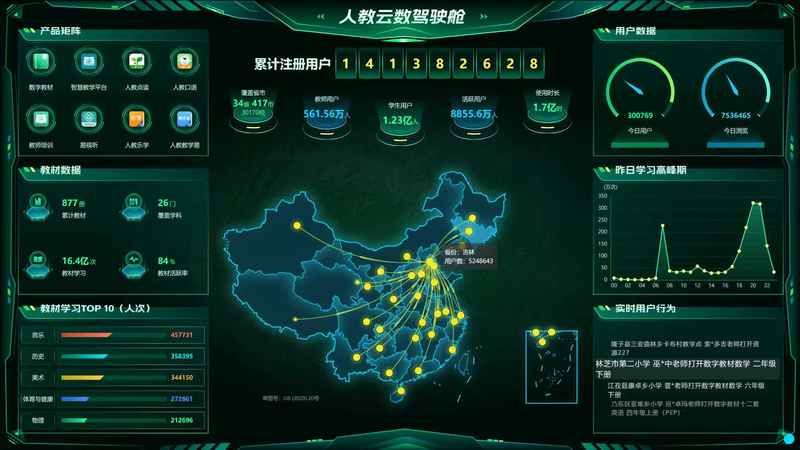 在“人教云數(shù)駕駛艙”,數(shù)字教材、智慧教學(xué)平臺、人教點讀等八大數(shù)字產(chǎn)品矩陣一目了然。 人民教育出版社供圖