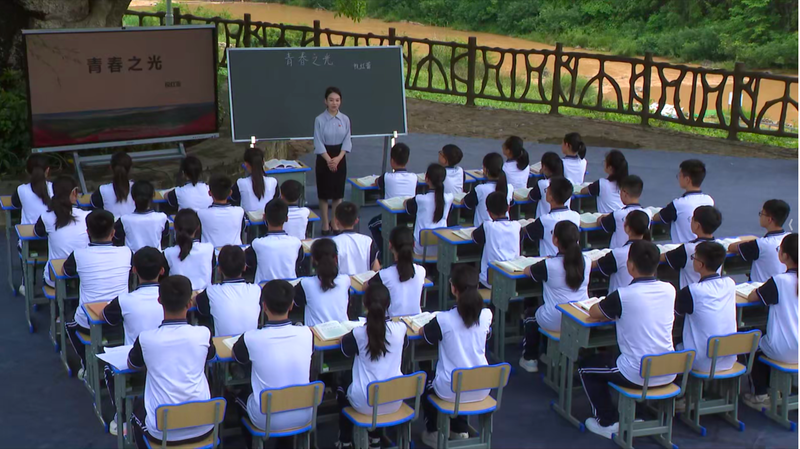 2025年5月,廣西百坭村同心文化廣場(chǎng)《青春之光》授課現(xiàn)場(chǎng)。 人民教育出版社供圖