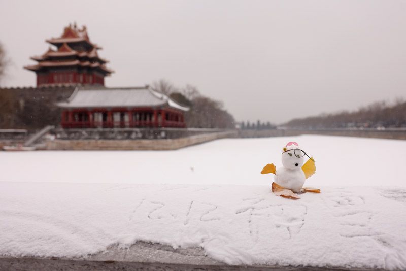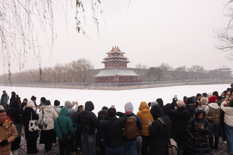 12月12日,雪中的故宮古韻盎然,吸引大批游客前來打卡。