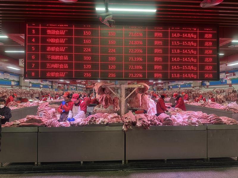 新京報訊(記者陳琳)近日,北京迎來了今年入冬以來的第一場雪,雪后蔬菜、肉類的供應如何?12月14日,記者實地探訪北京新發(fā)地市場,了解豬肉、蔬菜以及當季水果的價格和供應情況。