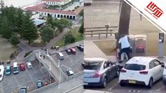牽引出機(jī)庫后,工作人員準(zhǔn)備卸下牽引桿。