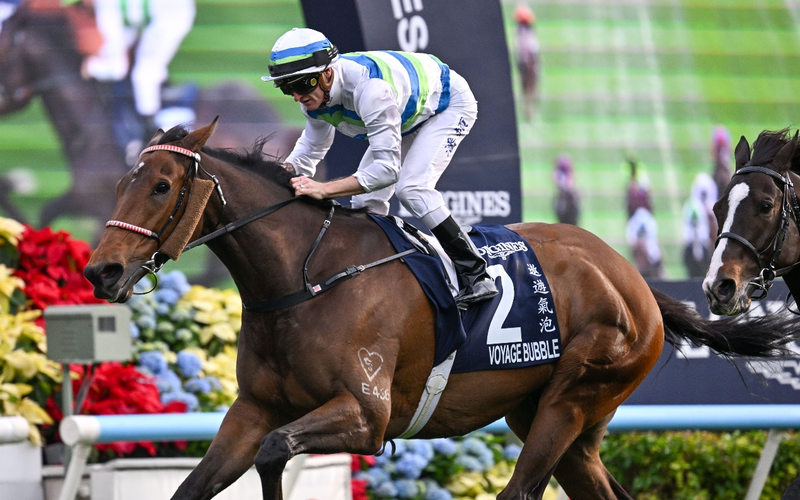由練馬師姚本輝訓(xùn)練、潘頓策騎的“遨游氣泡”勝出浪琴香港一哩錦標(biāo) (1600米一級賽)。