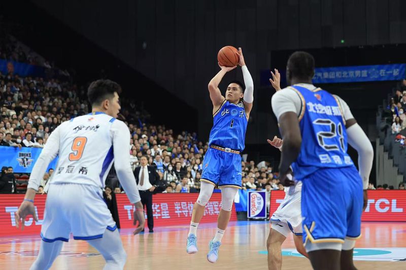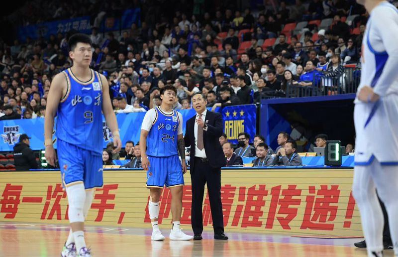 12月15日,CBA常規(guī)賽,北京北汽主場(chǎng)迎戰(zhàn)新疆伊力特。最終,北京北汽以111比84的懸殊比分大勝對(duì)手。圖為主教練向首次在主場(chǎng)亮相的趙睿布置戰(zhàn)術(shù)。