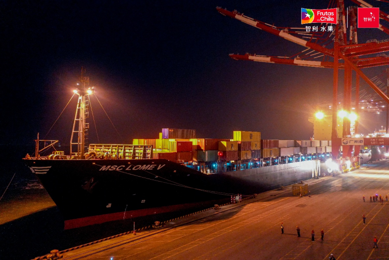 中智兩國緊密友好的貿(mào)易伙伴關(guān)系與成熟的冷鏈物流體系,為智利車?yán)遄拥倪\(yùn)輸支撐起高效穩(wěn)定的供應(yīng)鏈系統(tǒng)。智利水果出口商協(xié)會主席伊萬·馬凡比奧表示:“今年直航中國的車?yán)遄訉0嘣黾又?2班,數(shù)量相比去年增加了一倍。通過高效的‘車?yán)遄涌炀€’物流運(yùn)輸體系,智利車?yán)遄觾H需23天即可跨越2萬公里,以出眾的品質(zhì)和新鮮狀態(tài)到達(dá)中國市場,滿足中國消費(fèi)者在冬季對高品質(zhì)水果的需求。”