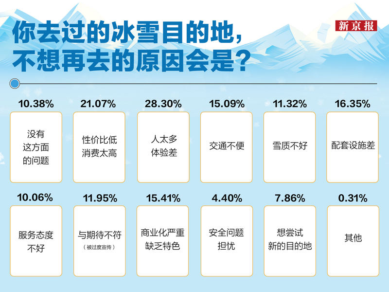 Z世代不想再去冰雪旅游目的地的原因類型。