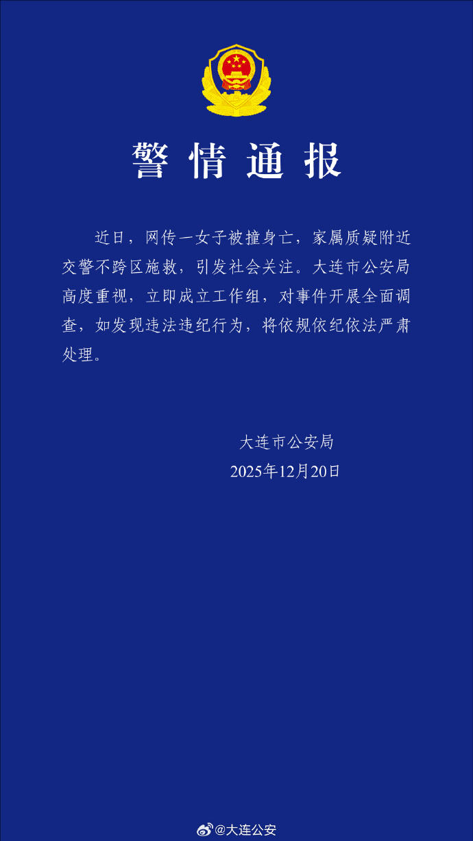 新京報(bào)訊 12月20日,大連市公安局官方微博發(fā)布警情通報(bào)。編輯 陳艷婷 點(diǎn)贊 +1 微博 微信 我要評(píng)論 登錄 直播 直播中 直播丨北京培育建設(shè)國際消費(fèi)中心城市工作成效和亮點(diǎn)新聞發(fā)布會(huì) 1991人參與 直 播 直播丨當(dāng)“零關(guān)稅”風(fēng)吹過 走,去海南 4889人參與 熱點(diǎn) 1 現(xiàn)場(chǎng)|2026年研考今日開考 3.2萬 2 研考明日開考 準(zhǔn)備工作就緒 2.5萬 3 香港賽馬會(huì)與廣州三所職業(yè)院校達(dá)成合作,促進(jìn)文旅款待人才培養(yǎng) 1.3萬 4 英國多位暢銷書作家呼吁,每個(gè)新生兒從出生起就自動(dòng)辦理借書證 1.1萬 5 年內(nèi)首次“一周四審”,北交所IPO審核再提速 1.1萬 最新 2025新京報(bào)年度閱讀推薦榜85本入圍書單 18分鐘前 司機(jī)走錯(cuò)高速路口竟逆行 交警:罰款200元駕駛證記12分 25分鐘前 臺(tái)北襲擊案嫌犯作案時(shí)間曝光:86分鐘內(nèi)投彈傷人 40分鐘前 鉆頭遺落體內(nèi)數(shù)月,醫(yī)院的瞞比手術(shù)的錯(cuò)更可怕|新京報(bào)快評(píng) 40分鐘前 北京同仁堂集團(tuán)就南極磷蝦油問題聲明 上海市消保委表態(tài) 41分鐘前 熱議 國家衛(wèi)健委:飽和脂肪及糖含量將列入預(yù)包裝食品營養(yǎng)標(biāo)簽 新一批定點(diǎn)醫(yī)藥機(jī)構(gòu)人員騙保案例發(fā)布 伊朗水危機(jī)下的遷都困局 《互聯(lián)網(wǎng)平臺(tái)價(jià)格行為規(guī)則》印發(fā) 國家發(fā)展改革委有關(guān)負(fù)責(zé)同志就《互聯(lián)網(wǎng)平臺(tái)價(jià)格行為規(guī)則》答記者問