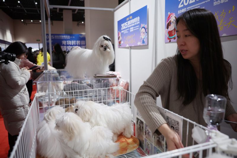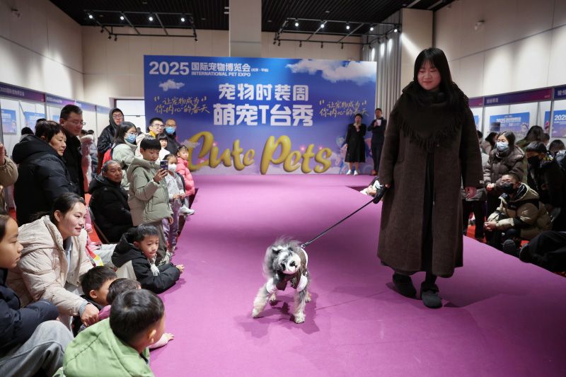 12月20日,2025國際寵物博覽會在平谷區(qū)開幕,來自全球約1300只名貓名犬集中亮相,匯集西高地、雪納瑞、比熊等名犬,以及金漸層、德文、布偶、緬因等名貓在內(nèi)的眾多明星品種,市民在現(xiàn)場能看到各種名貴貓犬,并參與豐富互動?;顒訉⒊掷m(xù)至21日。圖為寵物犬參加萌寵T臺秀。