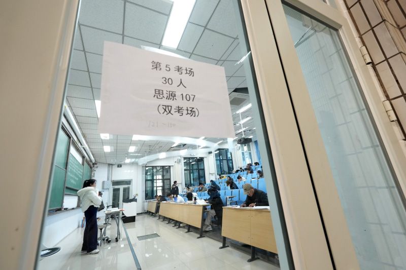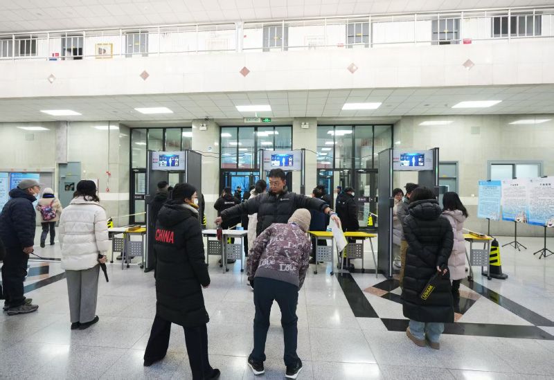 12月20日,考生走出北京交通大學外語科目考場,2026年全國碩士研究生招生考試首日考試結束。2026年全國碩士研究生招生考試初試考試報名人數(shù)為343萬,共設考點2433個,考場12萬個。
