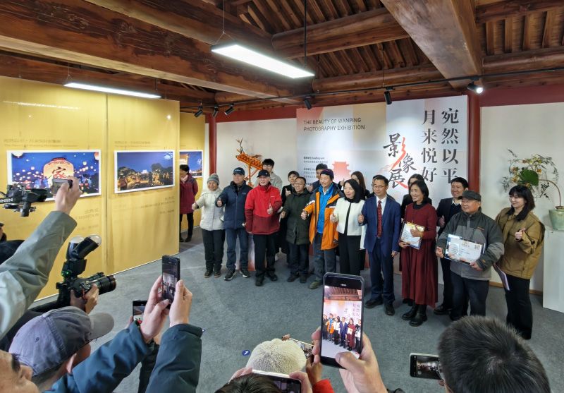 12月21日,恰逢冬至,“宛然以平 月來(lái)悅好”影像展在豐臺(tái)區(qū)宛平城內(nèi)開幕。影像展以“最美宛平中秋月”為主題,共展出廣大市民攝影愛好者優(yōu)秀攝影作品29幅,展現(xiàn)宛平的詩(shī)意和美好。圖為獲獎(jiǎng)作者和嘉賓合影留念。