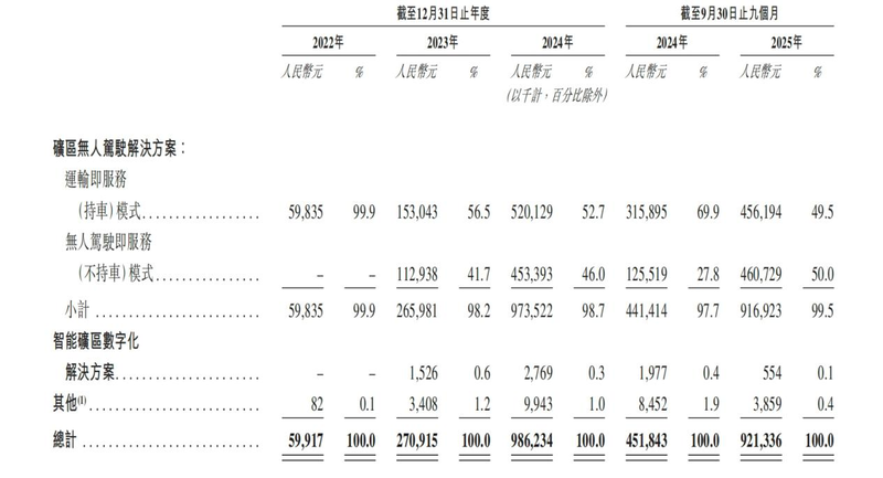 根據(jù)最新財(cái)務(wù)數(shù)據(jù),繼2024年ATaaS(不持車(chē))模式實(shí)現(xiàn)收入4.50億元,占總營(yíng)收比例突破46%后,2025 年前三季度,易控智駕ATaaS(不持車(chē))模式貢獻(xiàn)的營(yíng)收占比進(jìn)一步提升至50%,達(dá)到4.61億元,同比增長(zhǎng) 267%。