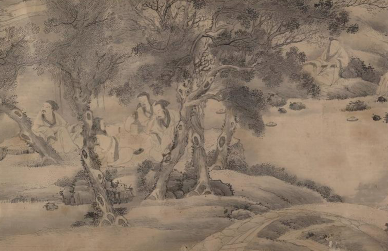 明代錢貢《蘭亭修禊圖》局部。