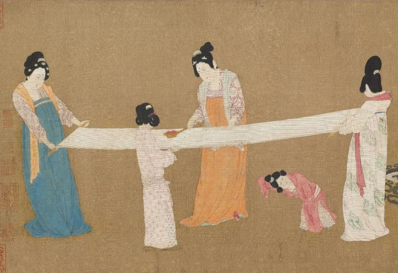 唐代張萱作品《搗練圖》(宋代摹本)局部。