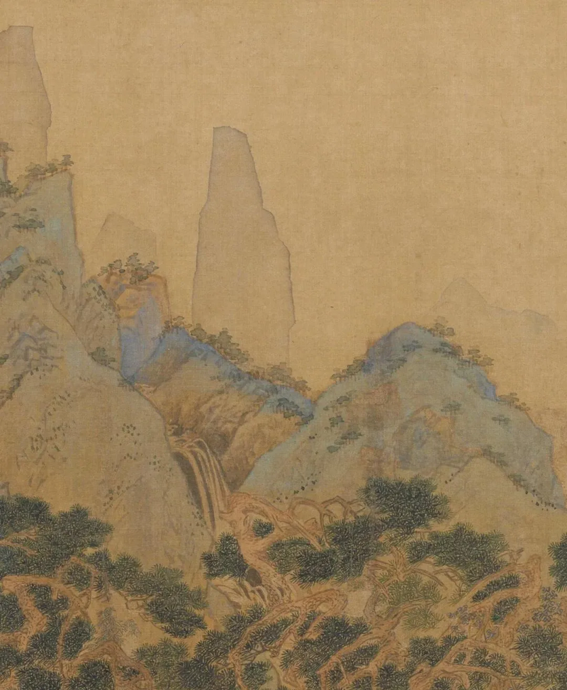 明代仇英《人物故事圖》之“高山流水”局部。