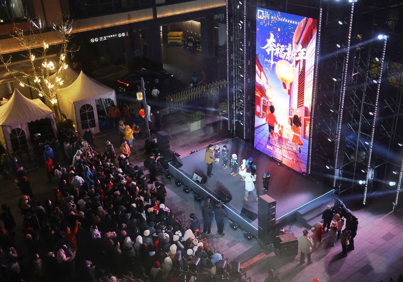 2025年12月31日,北京隆福寺舉辦“奔福新年”主題跨年活動。夜幕初降,融合音樂、運動等多種元素的互動表演率先點燃街區(qū),躍動的節(jié)拍與飽滿的活力瞬間激活全場氛圍。