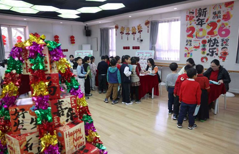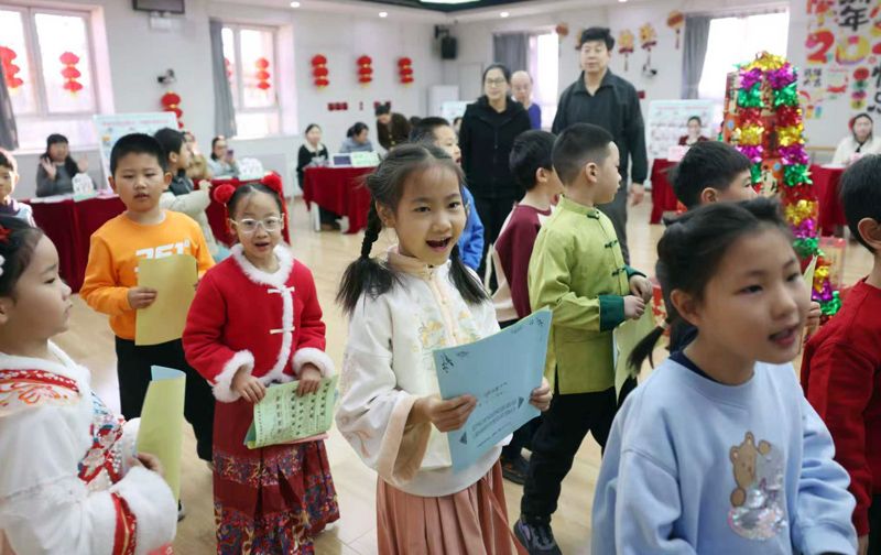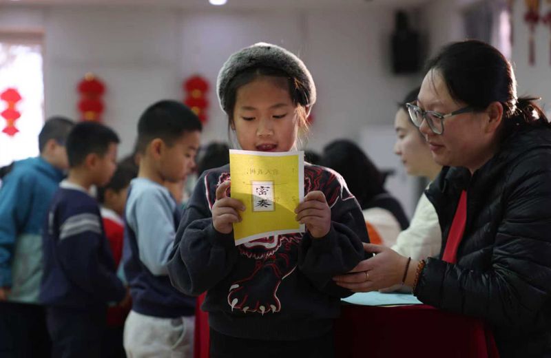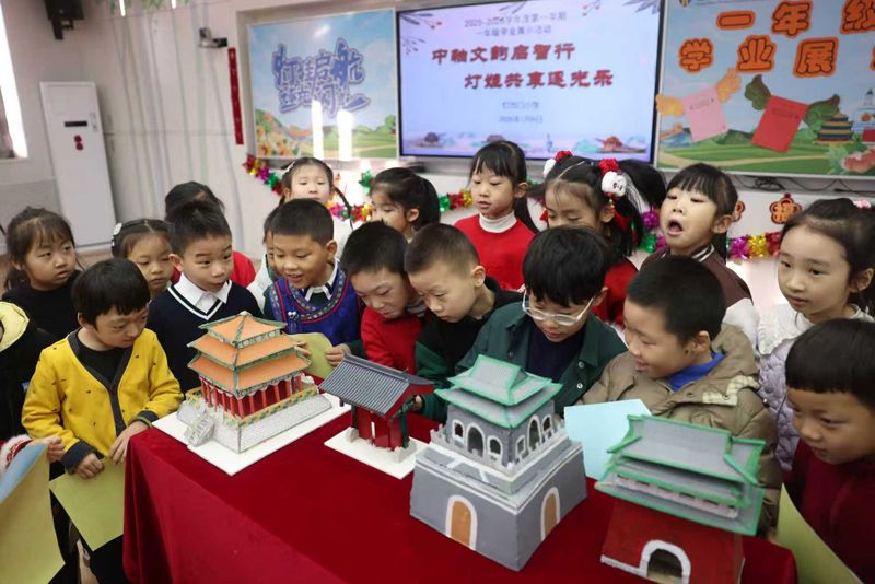 本學期末臨近,北京多所小學低年級“樂考”陸續(xù)開展。1月6日,燈市口小學一年級“樂考”在東高房校區(qū)舉行,學生們通過聽、說、讀、寫、算展示本學期的所學?!皹房肌爆F(xiàn)場,學校精心設(shè)置“暢游中軸線”活動,讓孩子們在趣味體驗中感悟傳統(tǒng)文化。