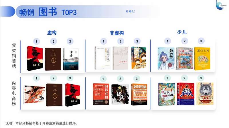 在年度影響力圖書方面,以搜索為主的貨架銷售榜和流量算法推薦為主的內(nèi)容電商榜上榜圖書存在明顯不同。虛構(gòu)類中《紅巖》和《一句頂一萬句(精)》均進(jìn)入貨架銷售榜和內(nèi)容電商榜前3名,其中《紅巖》位居虛構(gòu)類貨架銷售榜首位,《哪吒·三界往事》位居虛構(gòu)類內(nèi)容電商榜首位。