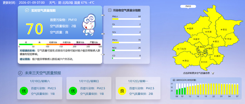 據(jù)北京市生態(tài)環(huán)境監(jiān)測(cè)中心今早7時(shí)數(shù)據(jù),目前實(shí)時(shí)空氣質(zhì)量指數(shù)70,空氣質(zhì)量良。