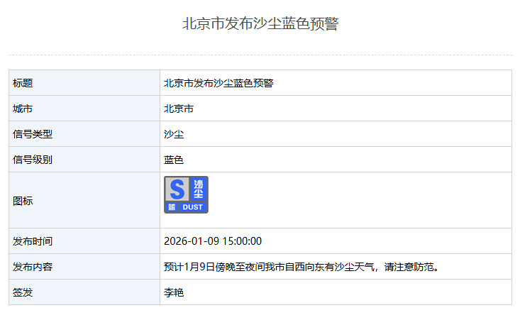 新京報(bào)訊 據(jù)北京市氣象局網(wǎng)站消息,北京市發(fā)布沙塵藍(lán)色預(yù)警。