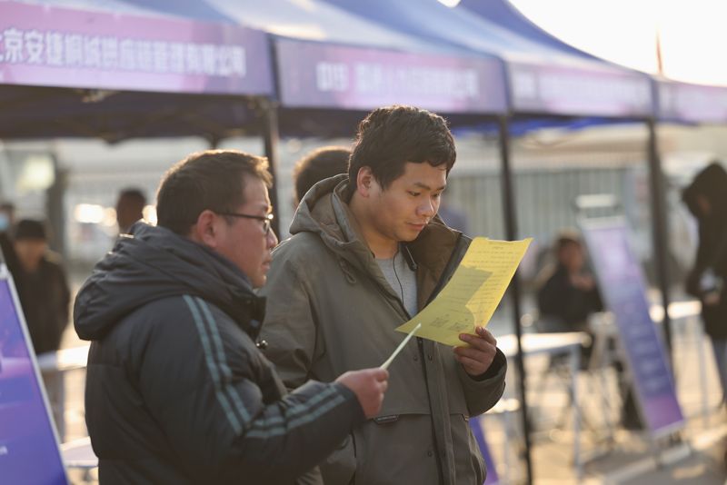 1月9日,北京市人力資源和社會保障局在馬駒橋零工市場組織開展“暖冬送崗 雙節(jié)穩(wěn)工”專場招聘會,62家優(yōu)質(zhì)企業(yè)現(xiàn)場提供招聘崗位需求3108個。