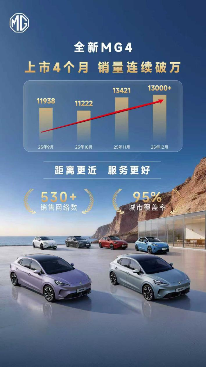 新年伊始,隨著各大車企陸續(xù)交出2025年銷量答卷,行業(yè)格局在這一年悄然生變——既有異軍突起的黑馬,也不乏負重前行的老將。在這幅競爭圖景中,經(jīng)過一段時間的沉淀與蓄力,MG在2025年迎來全面爆發(fā),交出了一份亮眼的成績單:品牌全年銷量同比增長超59%,其中新能源車型同比大幅增長476%,成為增長的絕對引擎;去年8月底上市的全新MG4連續(xù)四個月銷量破萬,12月單月銷量超1.3萬輛,累計大定訂單突破8萬輛,穩(wěn)穩(wěn)占據(jù)10萬級純電車型銷量前列。