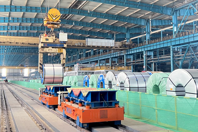 首鋼冷軋基于5G的無人搬運車(RGV)自動運輸成品。