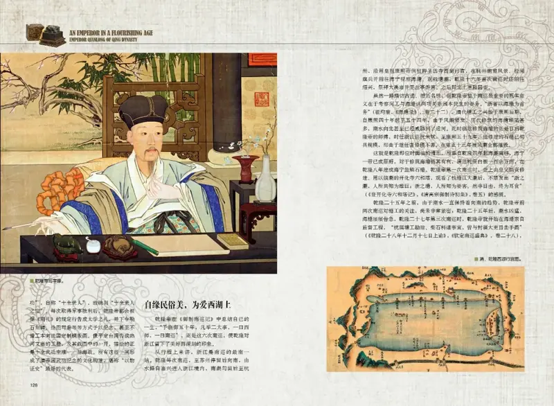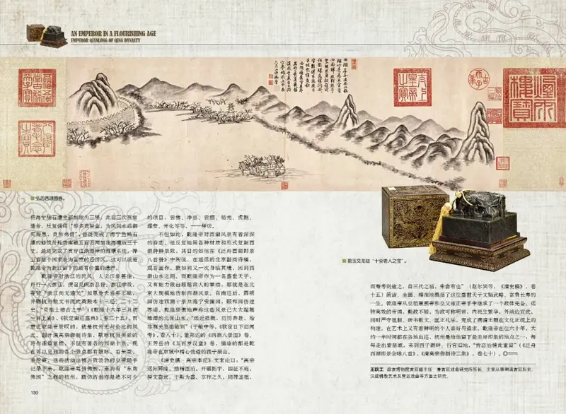 更超越一般帝王的是,他在藝術(shù)上有深厚的造詣:他既是出色的詩(shī)人、書(shū)法家、古物鑒賞家,又是品位不凡的藝術(shù)品和建筑設(shè)計(jì)者。他創(chuàng)造性地運(yùn)用各種藝術(shù)形式來(lái)表現(xiàn)他帝王生涯的方方面面——就像他好以詩(shī)歌的形式記錄其日常生活一樣,也正因?yàn)樗粝铝素S富的實(shí)物與文字,我們才有可能從更為個(gè)人化的角度理解這位明君。