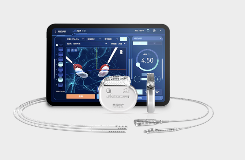 申辦企業(yè)生產(chǎn)的腦深部電刺激系統(tǒng),其中包括刺激器、導(dǎo)線、電池、體外程控器。網(wǎng)絡(luò)截圖