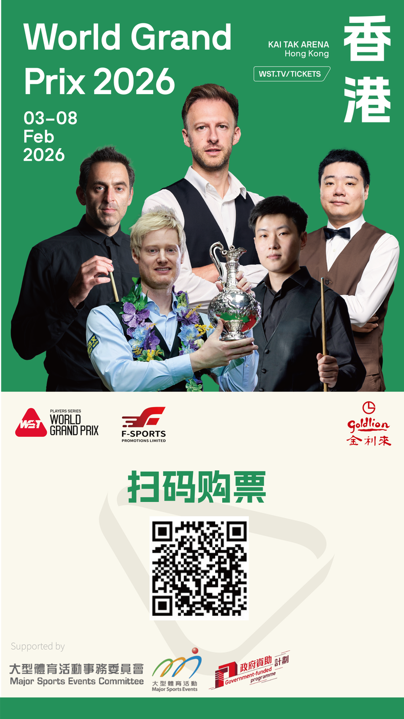 敬請(qǐng)關(guān)注“2026斯諾克世界大獎(jiǎng)賽”官方賽事信息,獲取最新動(dòng)態(tài)與購票信息。