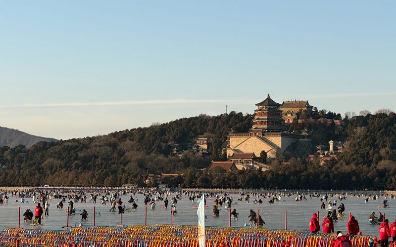 遼闊的天然冰面與萬壽山、佛香閣等古典建筑遙相呼應(yīng),形成獨具韻味的皇家園林冰雪畫卷,讓游客在滑行嬉戲間,既能感受傳統(tǒng)冰上項目的樂趣,亦能領(lǐng)略冬日戶外運動的別樣生機。