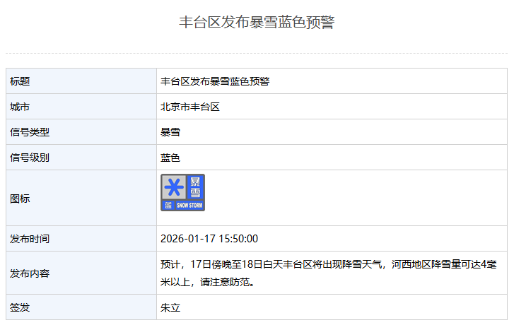 豐臺(tái)區(qū)發(fā)布暴雪藍(lán)色預(yù)警