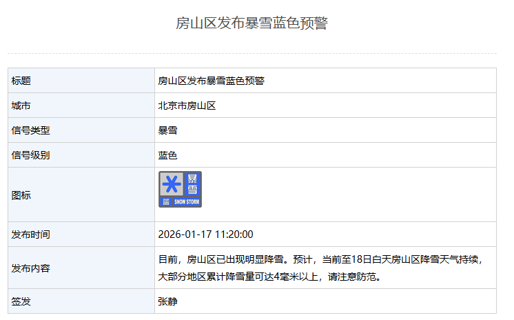 房山區(qū)發(fā)布暴雪藍(lán)色預(yù)警