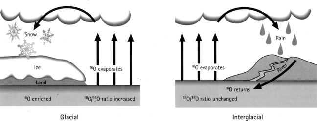 對氧同位素的分析。戴安娜·薩勒斯插圖,出自:吉爾德·凡·安德爾,《舊星球,新看法》(New Views on an Old Planet,1994)?!妒澜缧鱅:從起源到公元前4000年》插圖