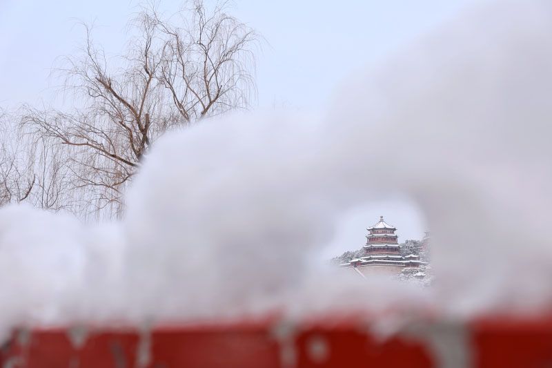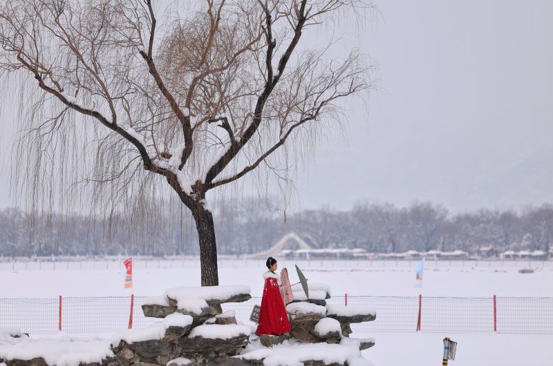雪中頤和園演繹冬日浪漫,冰場因厚雪暫閉