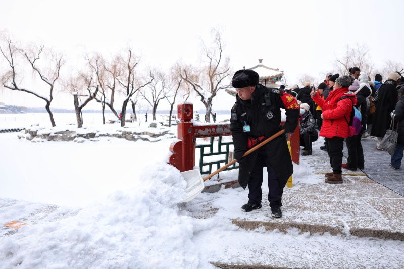 1月18日,雪落頤和園,銀裝素裹間盡顯古韻。游客們或駐足凝望雪中樓閣,或舉著相機(jī)定格美景,歡聲笑語里滿是賞雪的愜意。