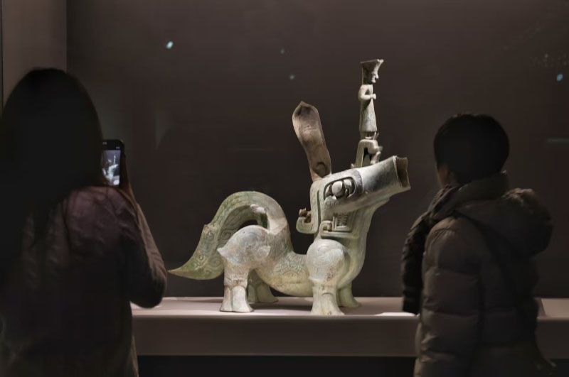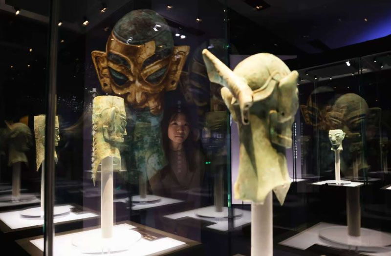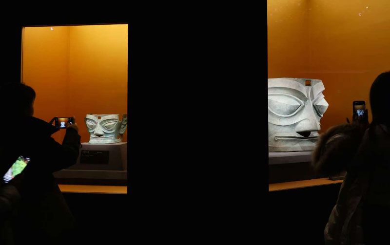 1月18日,中國國家博物館“雙星耀世——三星堆—金沙遺址古蜀文明展”正式對公眾開放。本次展覽薈萃三星堆—金沙遺址出土的200余件(套)精美文物,通過“驚世秘藏”“人神共舞”“崇祀天地”“互融共鑒”四個單元,生動呈現(xiàn)三星堆—金沙遺址的考古歷程與豐富文化遺存,反映古蜀先民的生活與精神世界,揭示古蜀文明與中原地區(qū)及長江中下游地區(qū)的密切聯(lián)系。圖為2021年三星堆遺址八號祭祀坑出土的青銅人頭像。