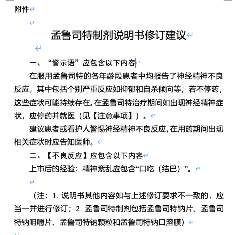 孟魯司特制劑說明書修訂建議。 圖源:國家藥監(jiān)局官網