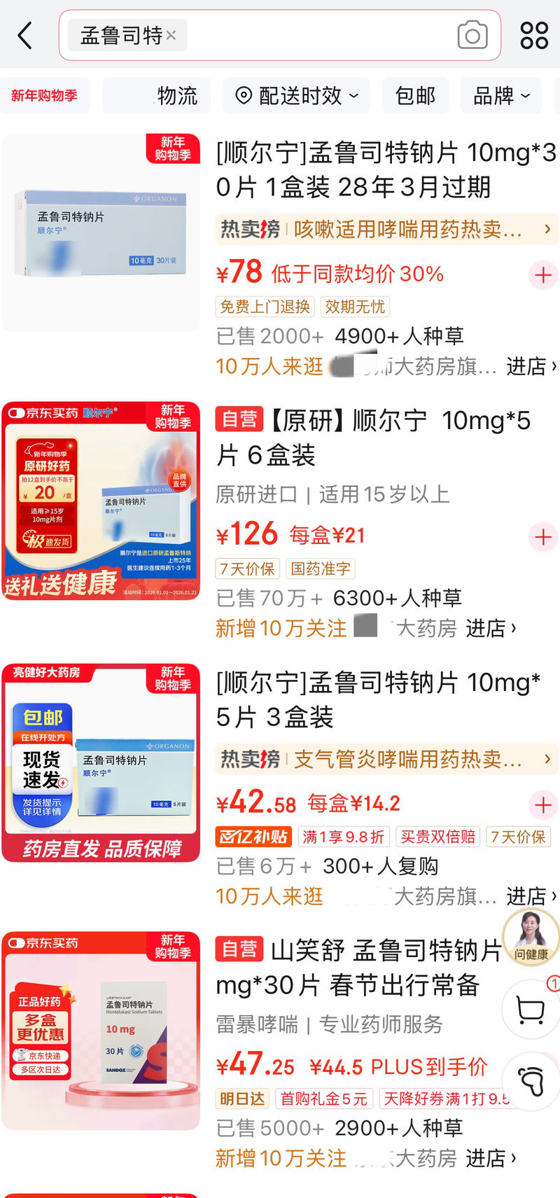 孟魯司特在電商平臺上銷量同樣驚人,一些品牌線上已售七十萬盒。 圖源:電商平臺截圖