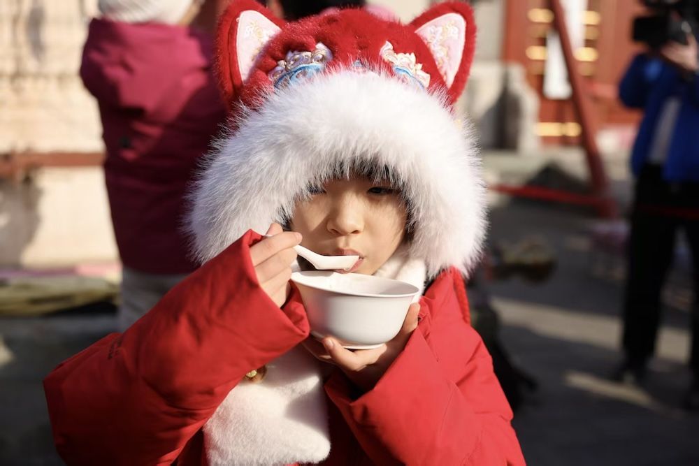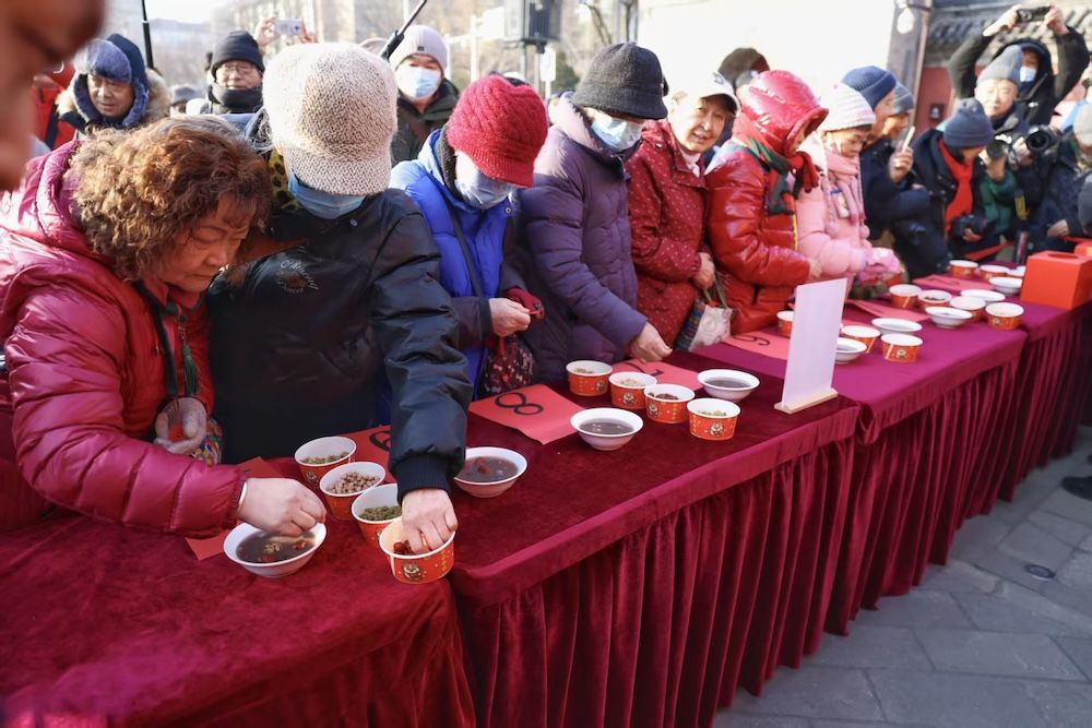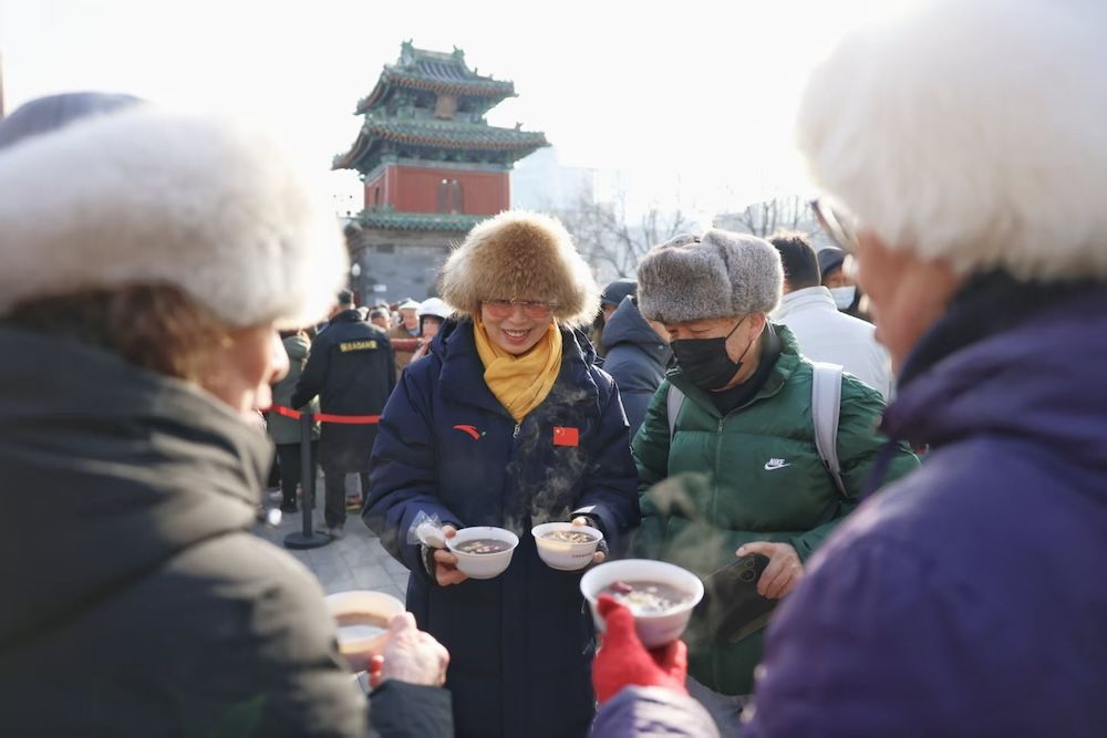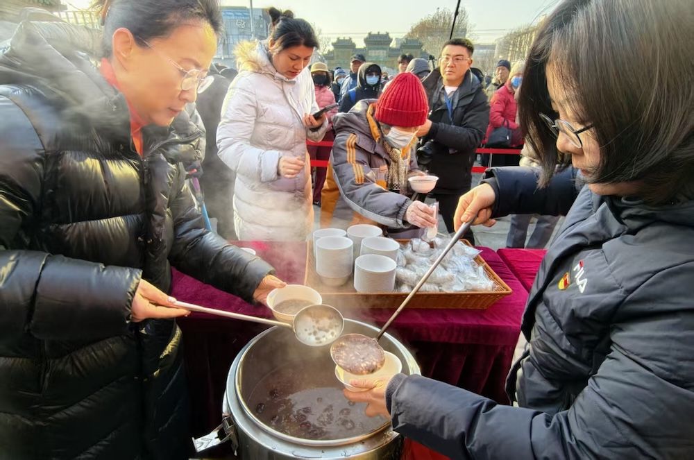 1月26日農(nóng)歷臘月初八,北京民俗博物館(東岳廟)南門(mén)廣場(chǎng),一場(chǎng)主題為“溫暖甜膩”“贈(zèng)粥傳情 迎年納福”的舍粥活動(dòng)溫情啟幕。千余碗經(jīng)數(shù)小時(shí)文火慢熬的香甜臘八粥免費(fèi)贈(zèng)予市民,這碗承載著700余年民俗傳承與新春祝福的熱粥,正式拉開(kāi)2026年第二十五屆北京民俗文化節(jié)的序幕。