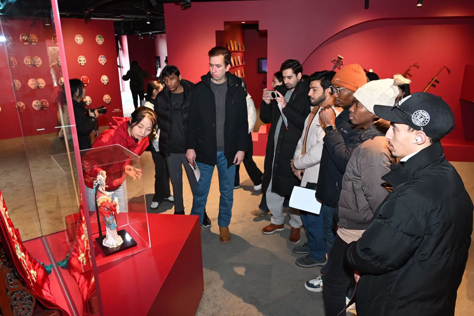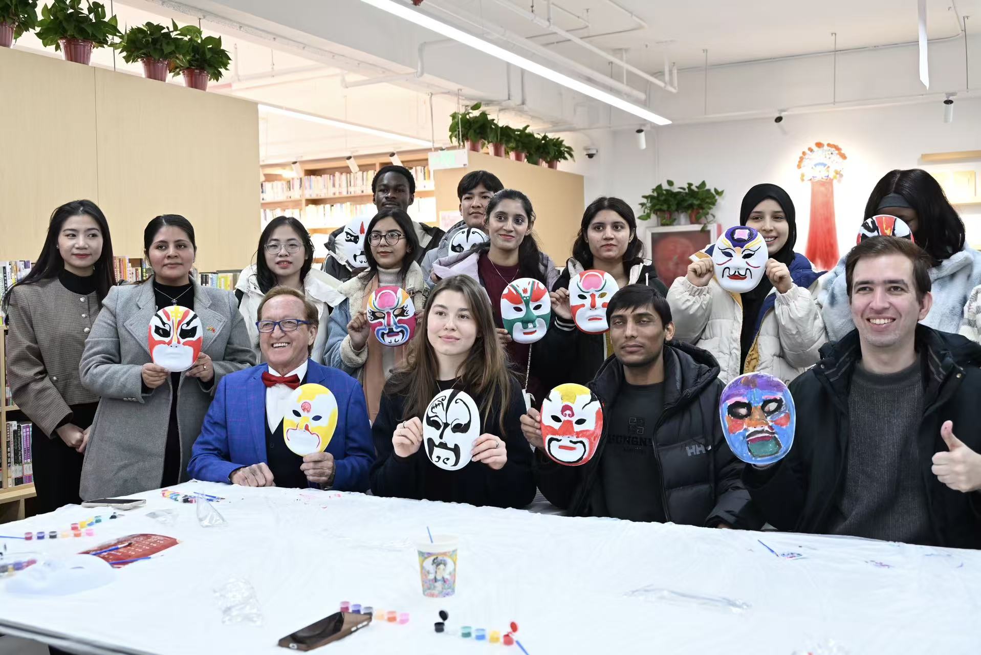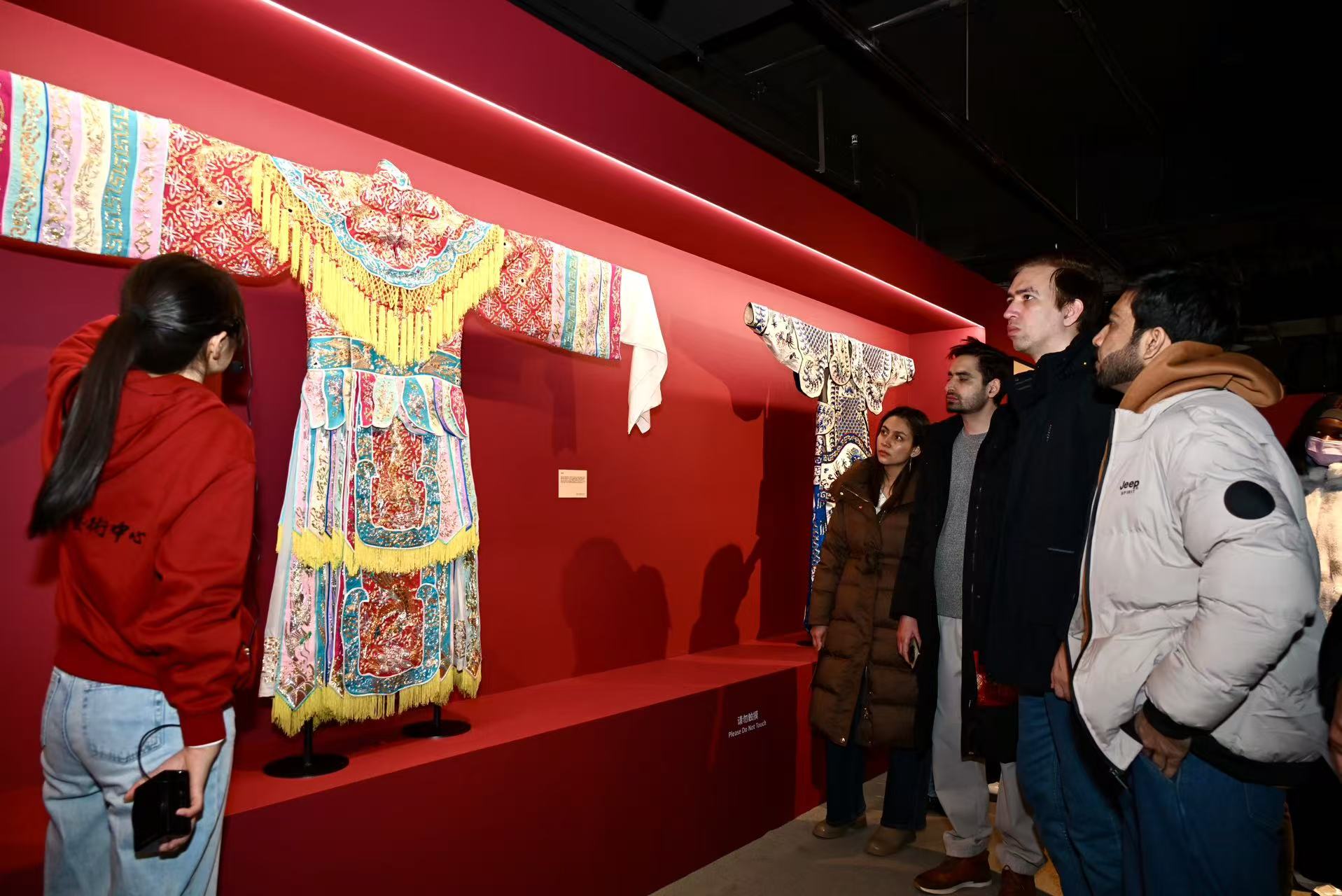 1月26日,恰逢農(nóng)歷臘八佳節(jié),“春暖朝陽(yáng) 國(guó)粹迎新”中外文化交流活動(dòng)在朝陽(yáng)區(qū)戲曲藝術(shù)中心啟動(dòng)。來(lái)自15個(gè)國(guó)家的40余位外國(guó)友人攜手本地居民歡聚一堂,以“靜態(tài)展覽+動(dòng)態(tài)展演+互動(dòng)體驗(yàn)”的創(chuàng)新形式,搭建起跨文化交流的橋梁。圖為外國(guó)嘉賓正在參觀京劇藝術(shù)主題展覽。
