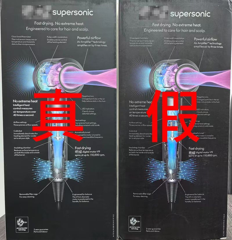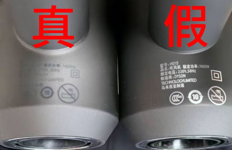 真假戴森吹風(fēng)機(jī)對(duì)比圖。上海金山警方供圖