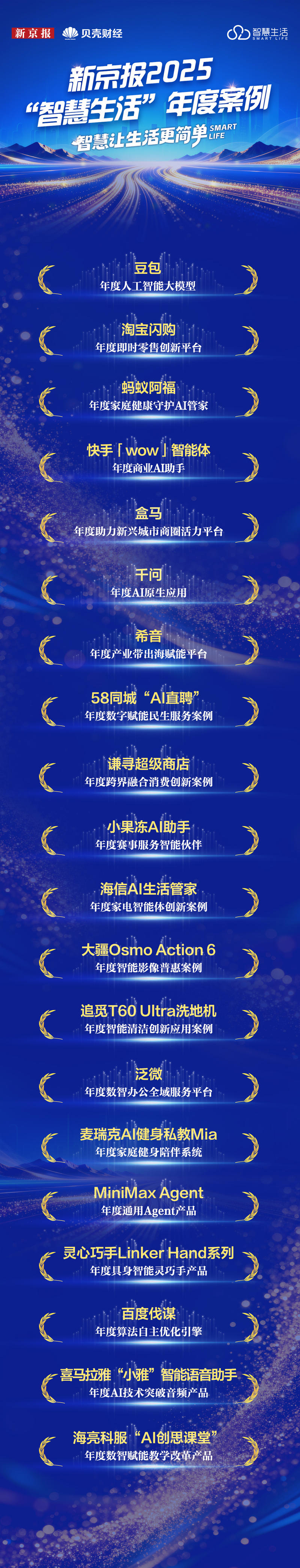1月29日,新京報(bào)2025“智慧生活”年度案例揭曉,包括豆包、淘寶閃購(gòu)、螞蟻阿福、海信AI生活管家等在內(nèi)的20家企業(yè)及產(chǎn)品脫穎而出。