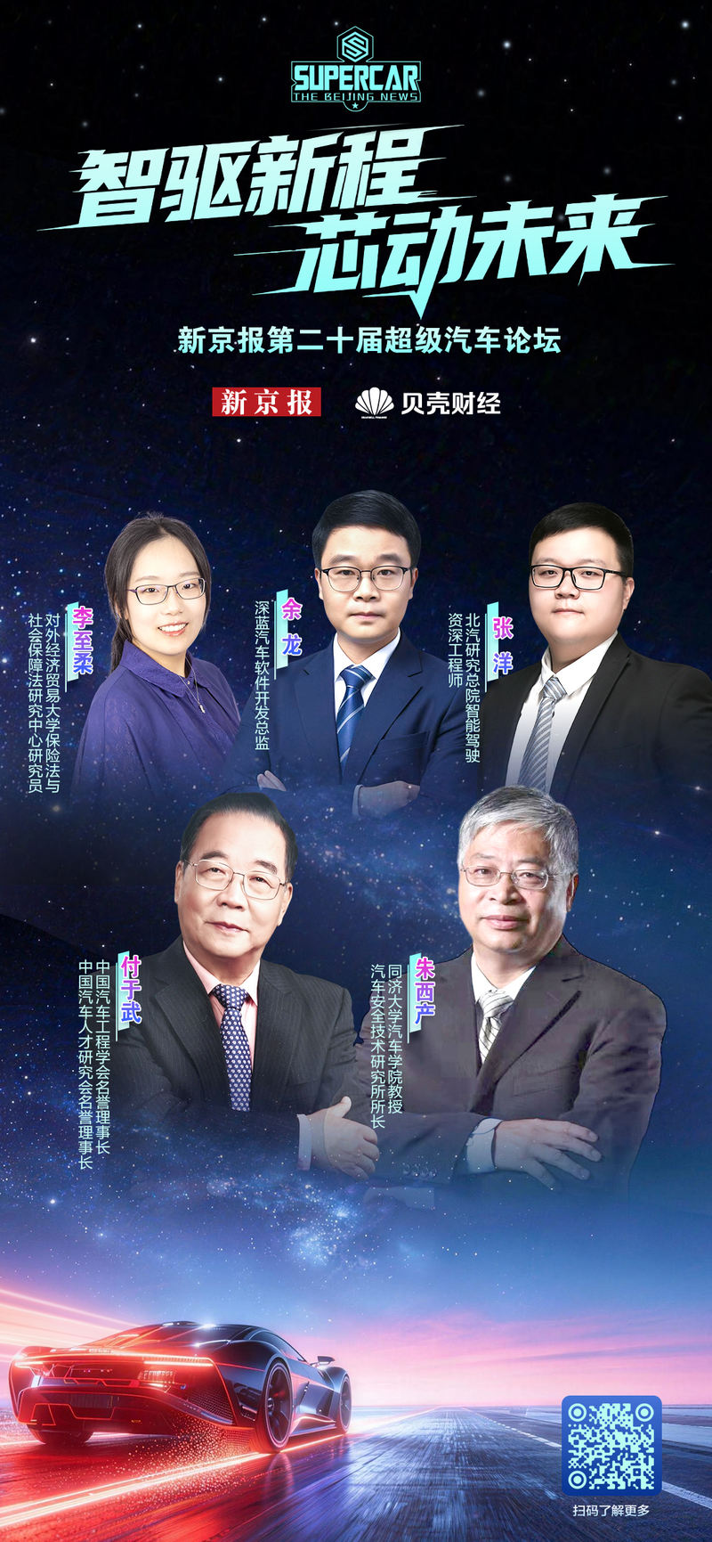 2026年1月30日下午,“智驅(qū)新程?芯動未來”新京報第二十屆超級汽車論壇舉辦。中國汽車工程學(xué)會名譽理事長、中國汽車人才研究會名譽理事長付于武,同濟大學(xué)汽車學(xué)院教授、汽車安全技術(shù)研究所所長朱西產(chǎn)做主旨演講。深藍(lán)汽車軟件開發(fā)總監(jiān)余龍、北汽研究總院智能駕駛資深工程師張洋、對外經(jīng)濟貿(mào)易大學(xué)保險法與社會保障法研究中心研究員李至柔,圍繞“自動駕駛挺進(jìn)L3,帶來怎樣的改變?”熱點話題展開圓桌對話,分享他們的真知灼見。