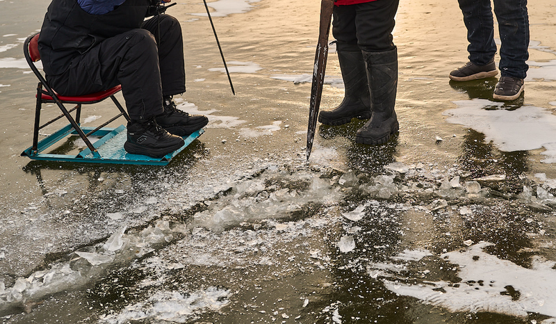 如果發(fā)現(xiàn)裂縫,他們會進行“冰面焊接”。這是白洋淀人都會的手藝,用冰釬扎透冰層,引下方的湖水上涌,湖水填滿裂痕,在低溫中迅速結(jié)冰。修補后的裂縫,能夠比原先的冰面還要堅硬。這是精密機器做不出來的手藝。