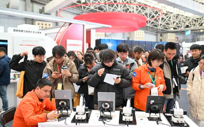 ▲2025年12月,人們在人工智能創(chuàng)新大會展區(qū)體驗(yàn)機(jī)械臂AI素描畫。圖/人民日報(bào)微信公眾號